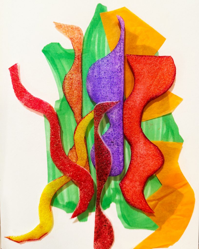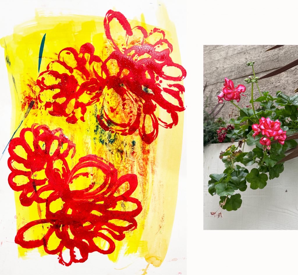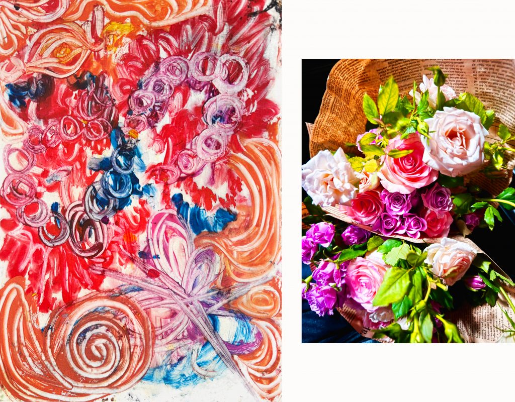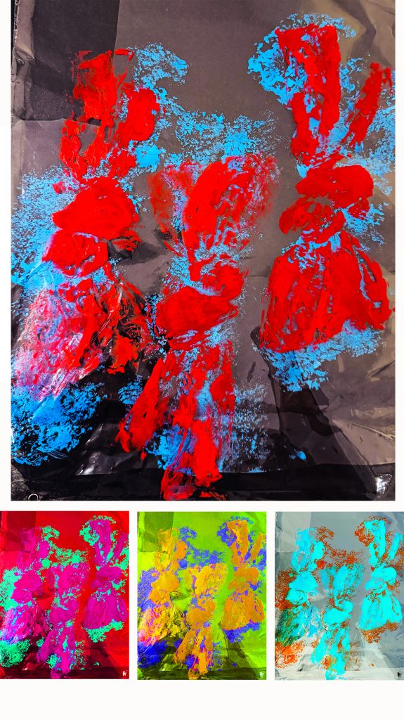 [The Flowers, using water colors on acetate for inkjet printing.]