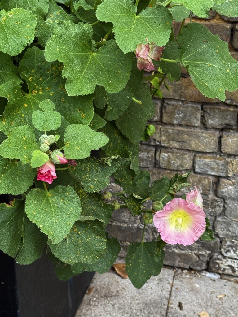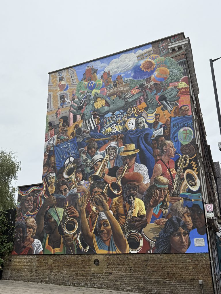 A flower below the Hackney Peace Carnival Mural.