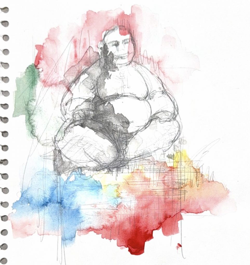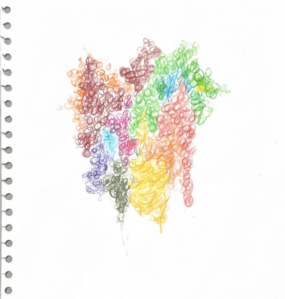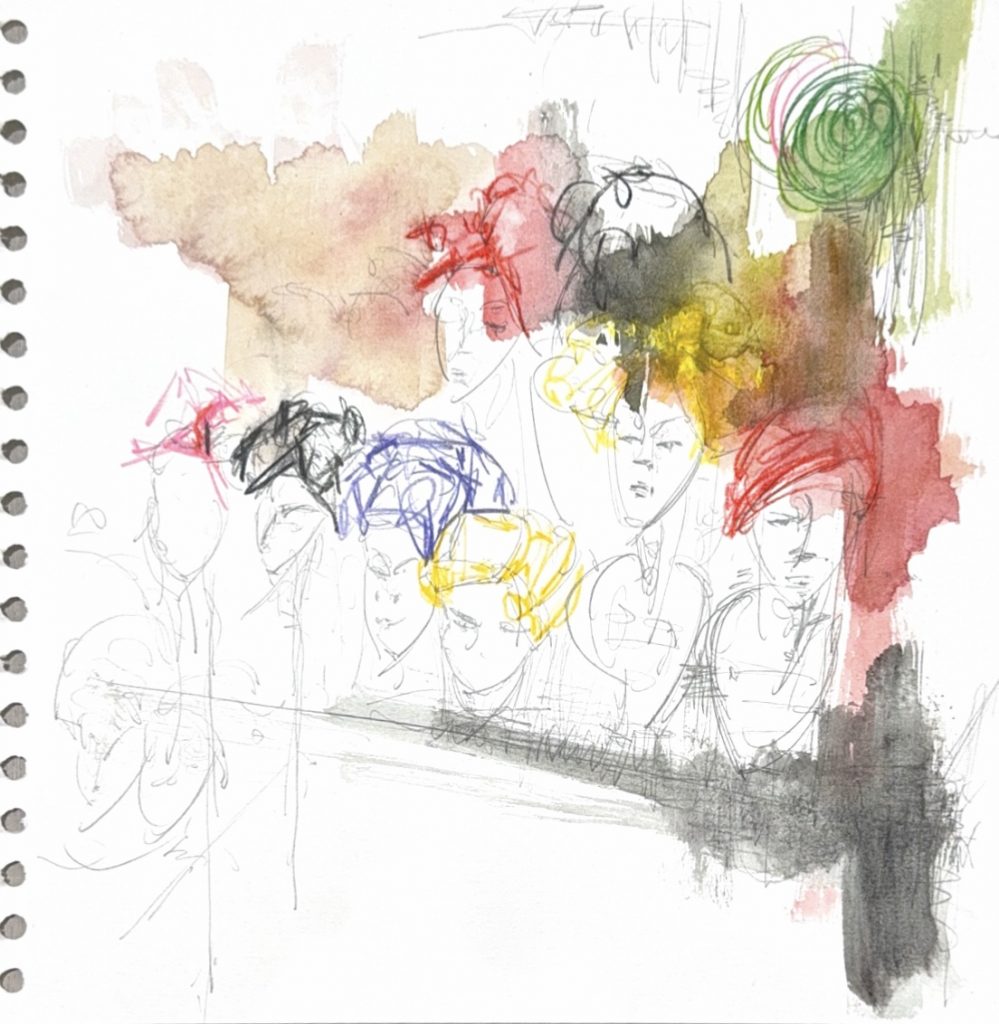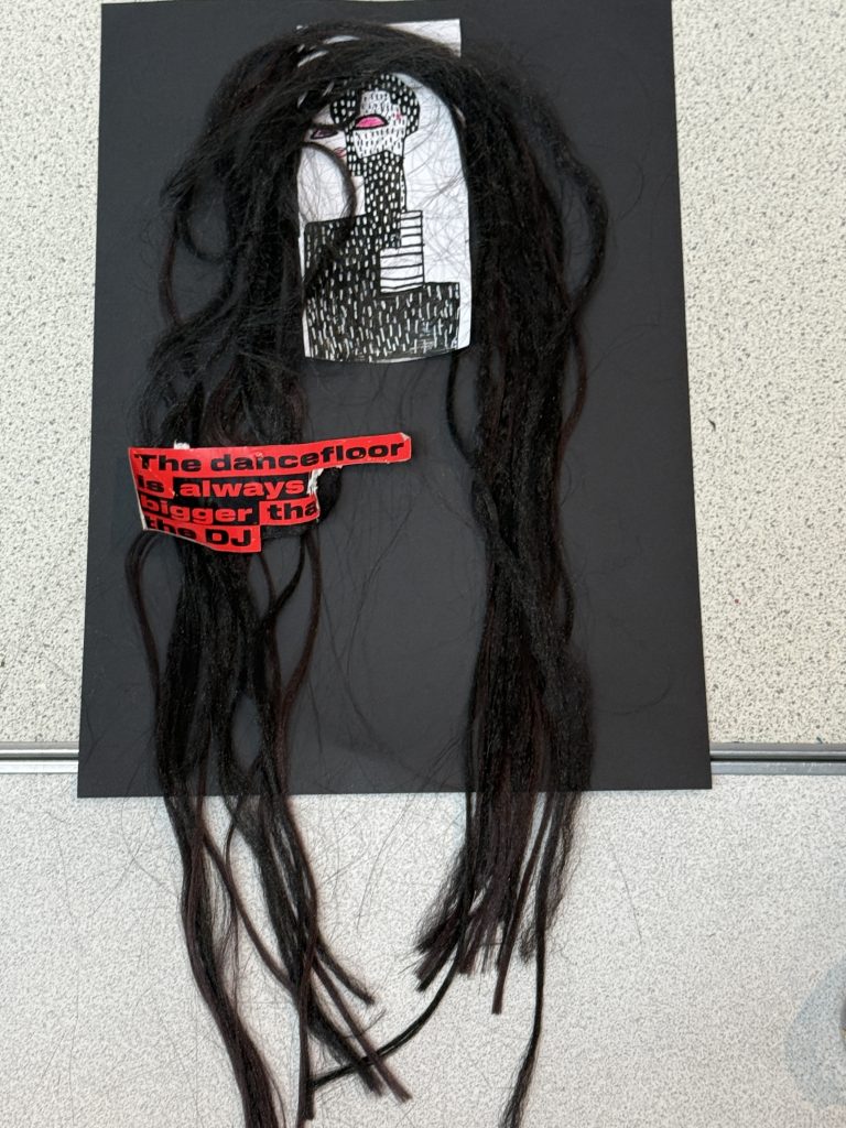 The five members of the group each drew a picture, and then put them together. The wig in question was bought at the market.