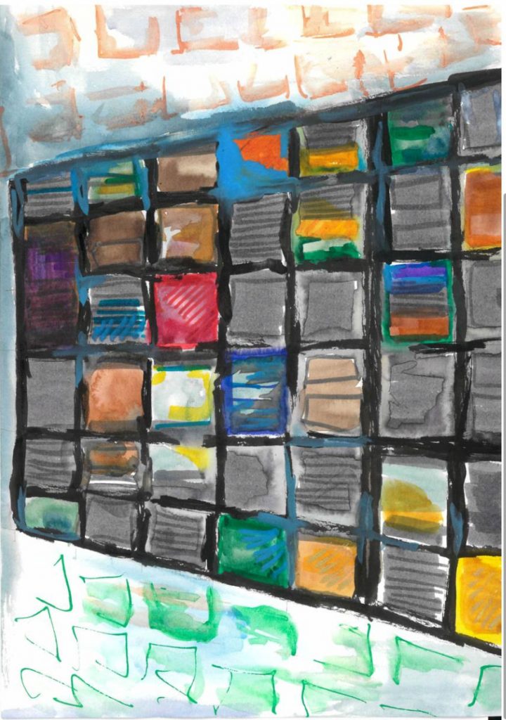 To explore colour even more drew on cling film with ink markers, then printed it on my collage.